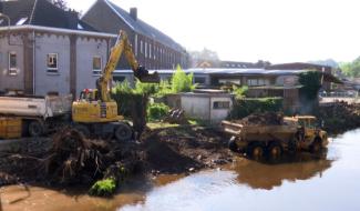 Les grands moyens déployés pour nettoyer la Vesdre à Dolhain