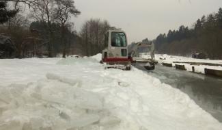 Malmedy : 20cm de glace sur les bassins de pisciculture, du jamais vu!