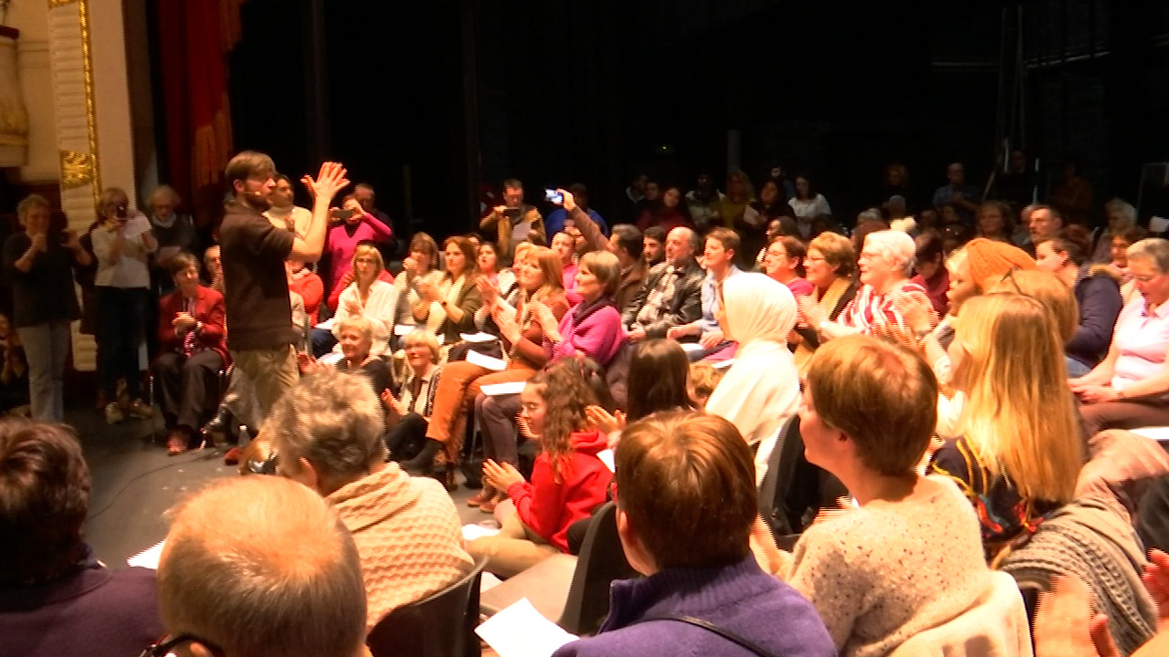 Le petit théâtre du casino de Spa a ouvert hier ses portes à des artistes d’un soir. Des artistes de tous âges, d’ici et d’ailleurs venus pour participer à une chorale dite "éphémère". Cet événement orchestré par la plate-forme citoyenne d’accueil des demandeurs d’asile, Ciréfasol, avec le soutien du Centre Culturel de Spa a réuni pour la toute première fois résidents, travailleurs, amis des centres d’accueil pour demandeurs d’asile de Polleur, Sart et Spa mais aussi d’autres personnes simplement curieuses de partager une expérience unique. Retour sur cette soirée pas tout à fait comme les autres.