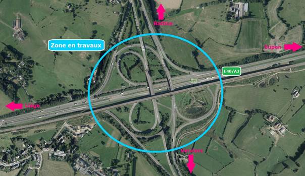 ? Du lundi 6 au samedi 11 novembre : fermeture de la bretelle reliant la N3 à l’E40/A3 en direction d’Eupen. Une déviation sera mise en place via la sortie « Chaineux ».
