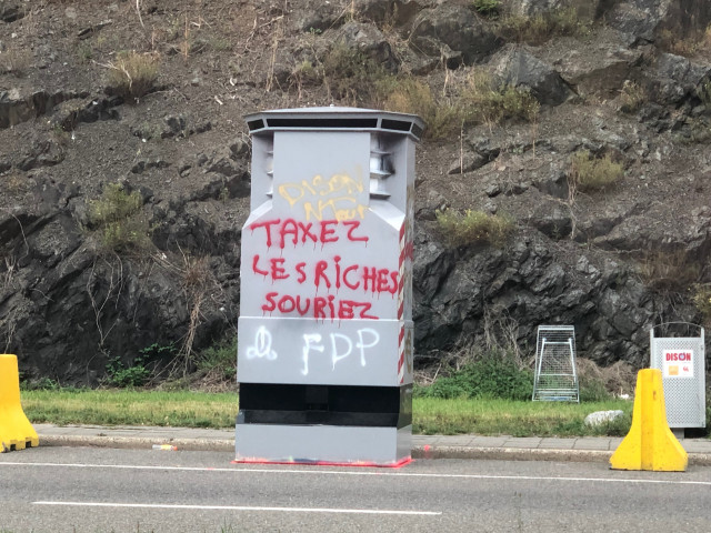 Installé depuis quelques jours seulement rue Pisseroule à Dison, le Lidar a été complètement tagué cette nuit entre 1 heure et 2 heures du matin ! On peut y voir des inscriptions « Taxez les riches, souriez » et d’autres messages obscènes. Les caméras de surveillance n’ont toutefois pas permis à la Zone de Police Vesdre de distinguer le ou les auteurs des tags. Ce n’est pas la première fois qu’un Lidar est pris pour cible à Verviers. Celui de la rue Pisseroule n’est aujourd’hui plus opérationnel.