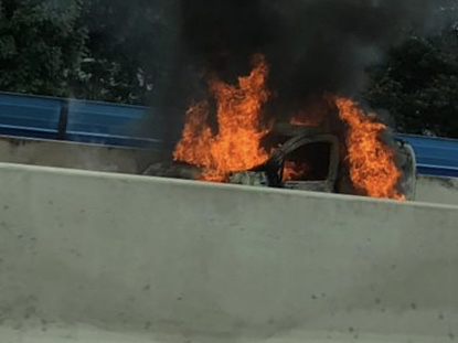 Voiture en feu sur la E42 à Ensival