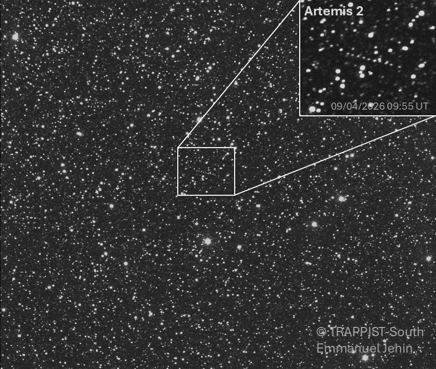 Ce jeudi matin, alors qu’il faisait encore nuit au Chili, l’astrophysicien spadois Emmanuel Jehin et ses étudiants ont pointé leur télescope robotique TRAPPIST-Sud vers la capsule Orion, en route vers la Terre.