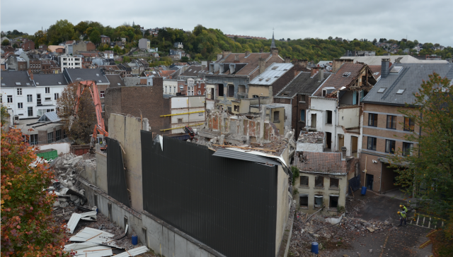 Conséquence des ces travaux, plusieurs bâtiments existants seront détruits. Parmi eux, l’ancien cinéma Palace de la rue Jardon. Ce mardi matin, la phase de démolition est entré dans une phase spectaculaire, puisqu’il ne restait déjà plus grand-chose de l’ex cinéma.