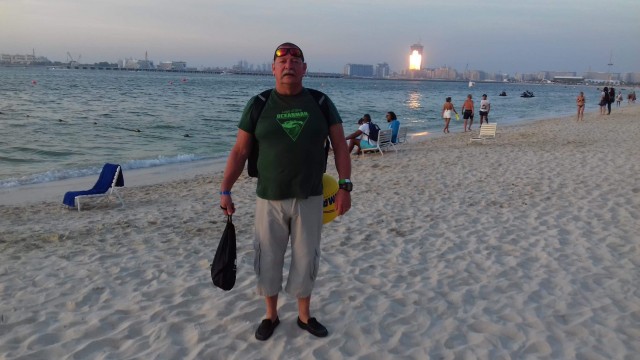 Robert Tensi, 65 ans, un nageur de Robertville, opéré du cœur en 2008 d’un double pontage, vient de réaliser un véritable exploit à Dubaï où il participait, le 16 novembre dernier, au championnat du monde de nage en eau libre (en mer), sur 10 kms. Ce vétéran sympathique a terminé 3ème dans la catégorie des « 60 ans et plus » en 3H27’, derrière un Mexicain et un Français.