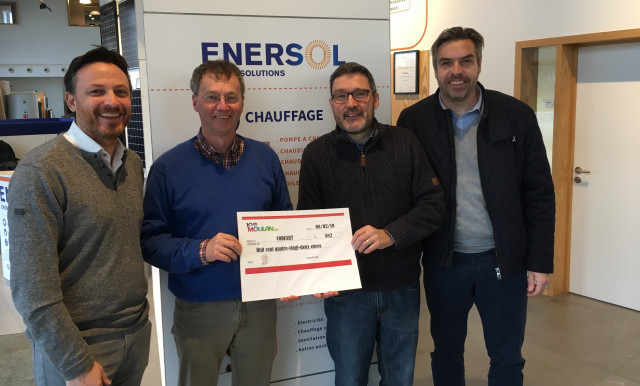Grâce aux bénéfices engendrés par l’événement, les organisateurs (Outdoor Unlimited et Moulan sa) en collaboration avec la société hôte de cette édition 2018 (ENERSOL), ont eu l’honneur et le plaisir de pouvoir remettre un chèque de 882€ à l’asbl CODEART.