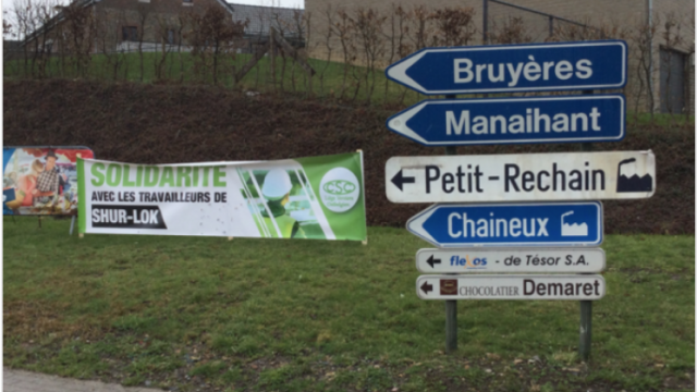 Pour marquer son soutien aux travailleurs et travailleuses dont l’emploi est menacé, la CSC Liège-Verviers-Ostbelgien a déployé des calicots solidaires au zoning des Plenesses et à Petit-Rechain.