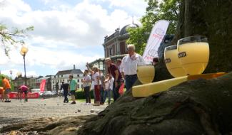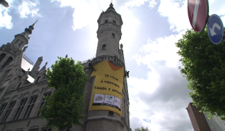 Un maillot jaune géant à l'ancienne Grand-Poste à Verviers